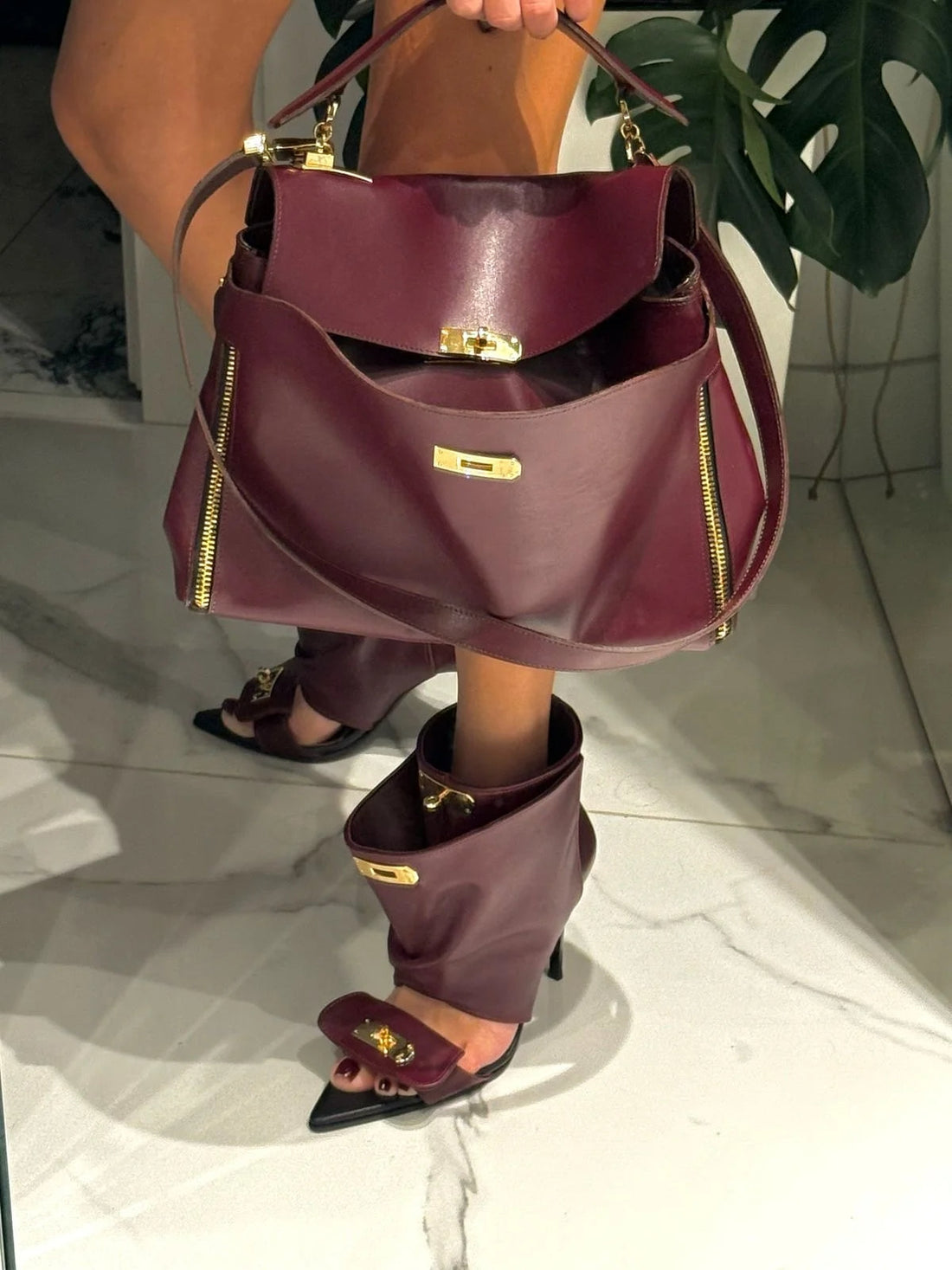 -Product Details-Crafted from faux patent leather in an ultra-glossy burgundy hue, this avant-garde accessory boasts...