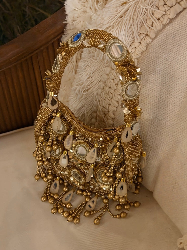 Mirrored Details Crystal Embroidery Handbag Underarm Bag