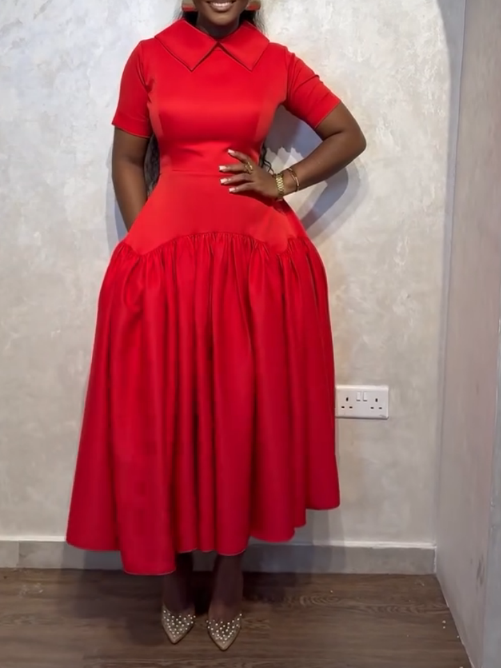 -Product Details- This Classic A-Line Red Midi Dress is the perfect blend of elegance and...