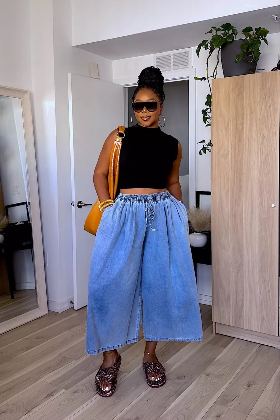 Wide Leg Baggy Jeans Plus Size Loose Elastic Waist Denim Pants