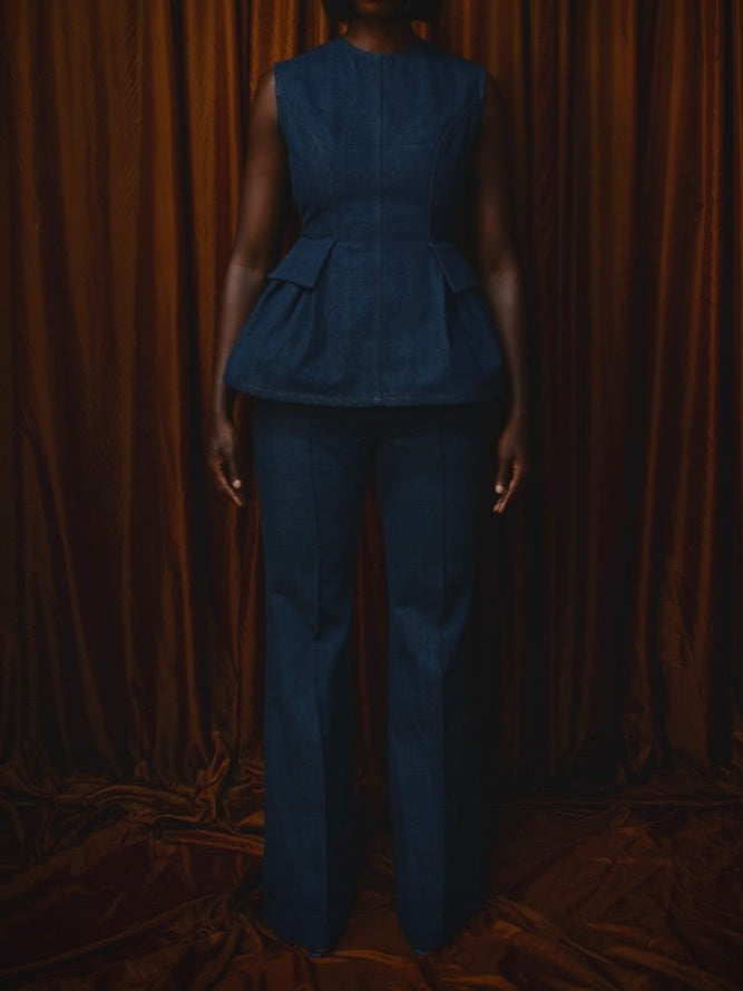 Backless Denim Peplum Two Pieces Set