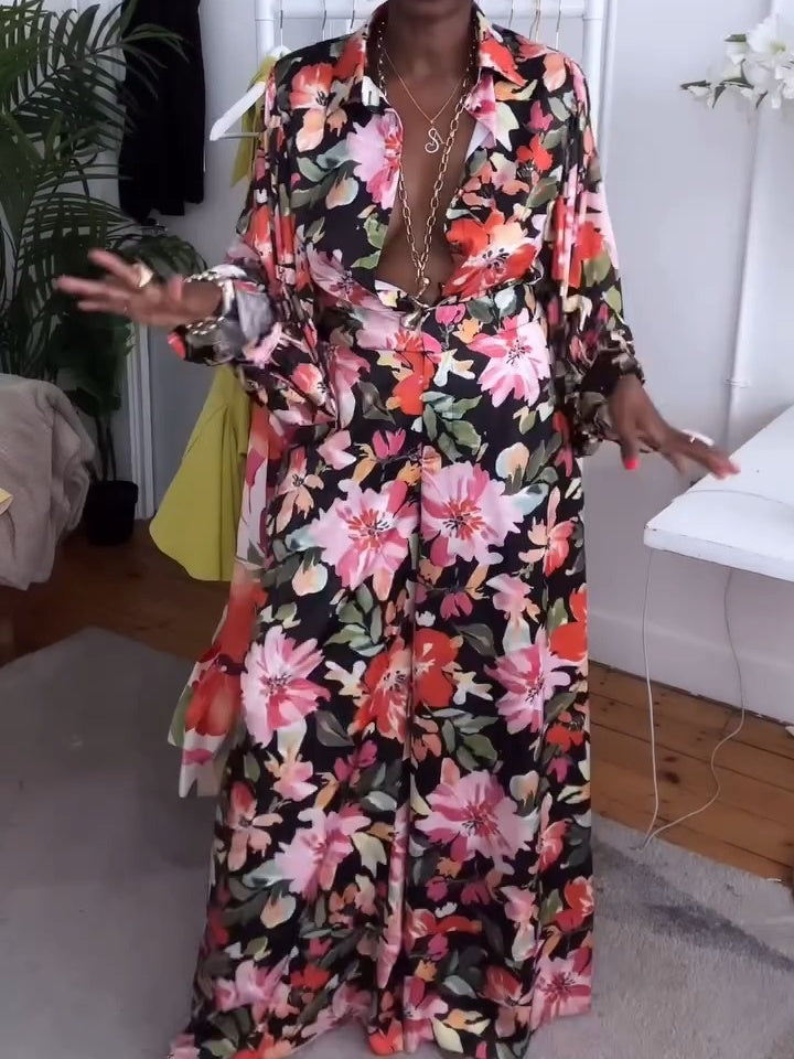 Black Multi Floral Two Pieces Set