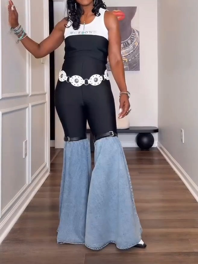 Patchwork Denim Jumpsuit