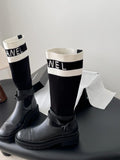 Elevate your style with these chic letter print boots, crafted from premium leather for a sophisticated and fashionable look. Limited-time offer!