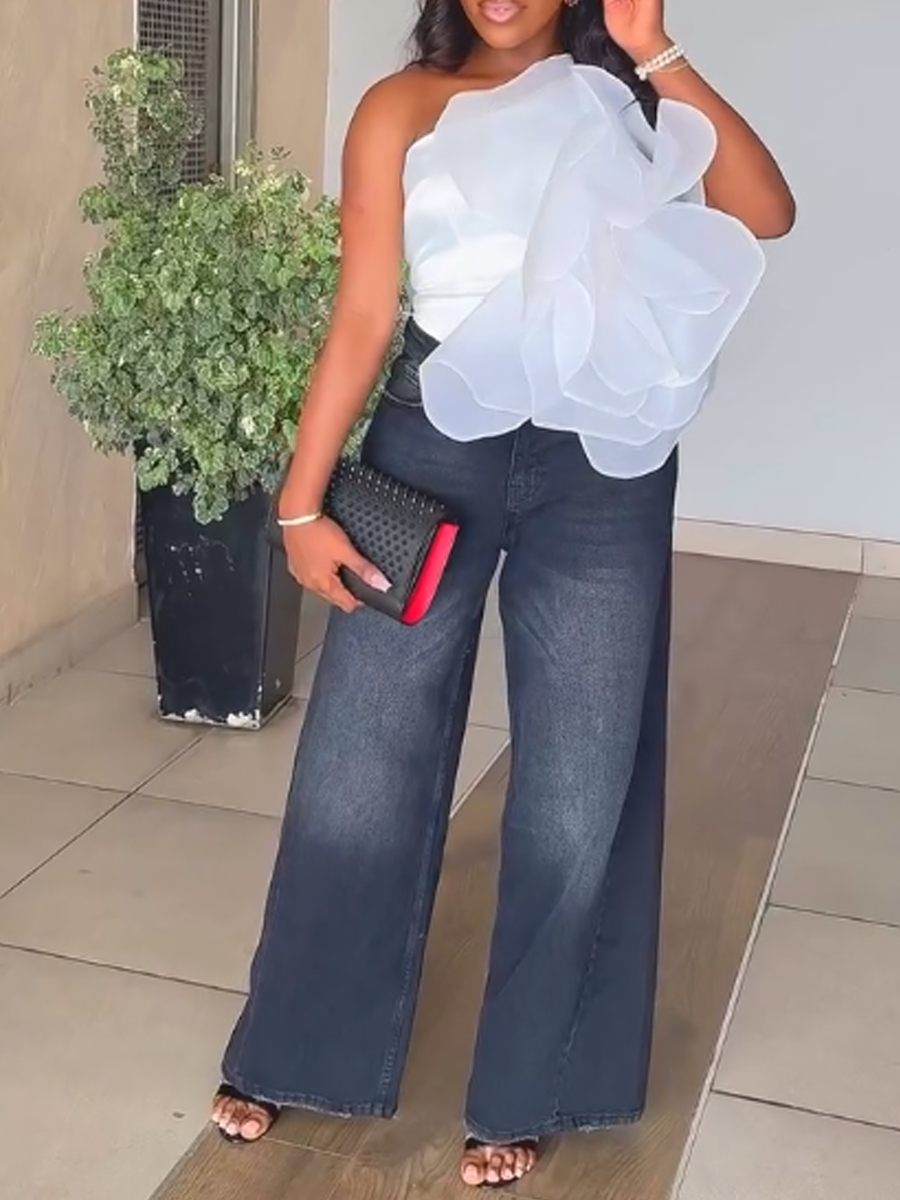 - Design Features: Asymmetrical neckline with ruffled detailing for a chic silhouette