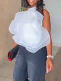 This stunning top is a perfect blend of elegance and modern design. Crafted from a lightweight chiffon fabric, it features a beautifully layered floral design that adds a unique touch to any outfit.