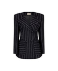 - Design Features: The deep V-neckline of the bustier adds a bold touch while the structured blazer provides a chic layer