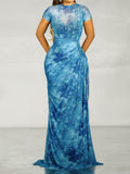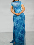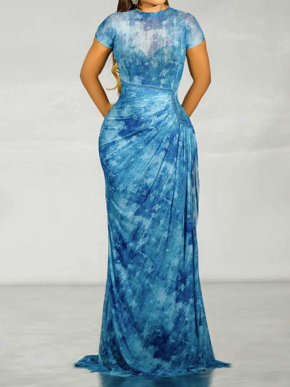 Fitted waist with flowing maxi skirt to elongate and flatter the figure