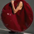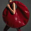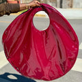 Crafted from faux patent leather in an ultra-glossy burgundy hue, this avant-garde accessory boasts a structured, oversized disc design, wide arm openings, and a strategically placed exterior pocket where you can comfortably rest your hand. It’s complete with a tonal zip-top closure and a supremely spacious, fully lined interior that can accommodate even your bulkiest essentials.