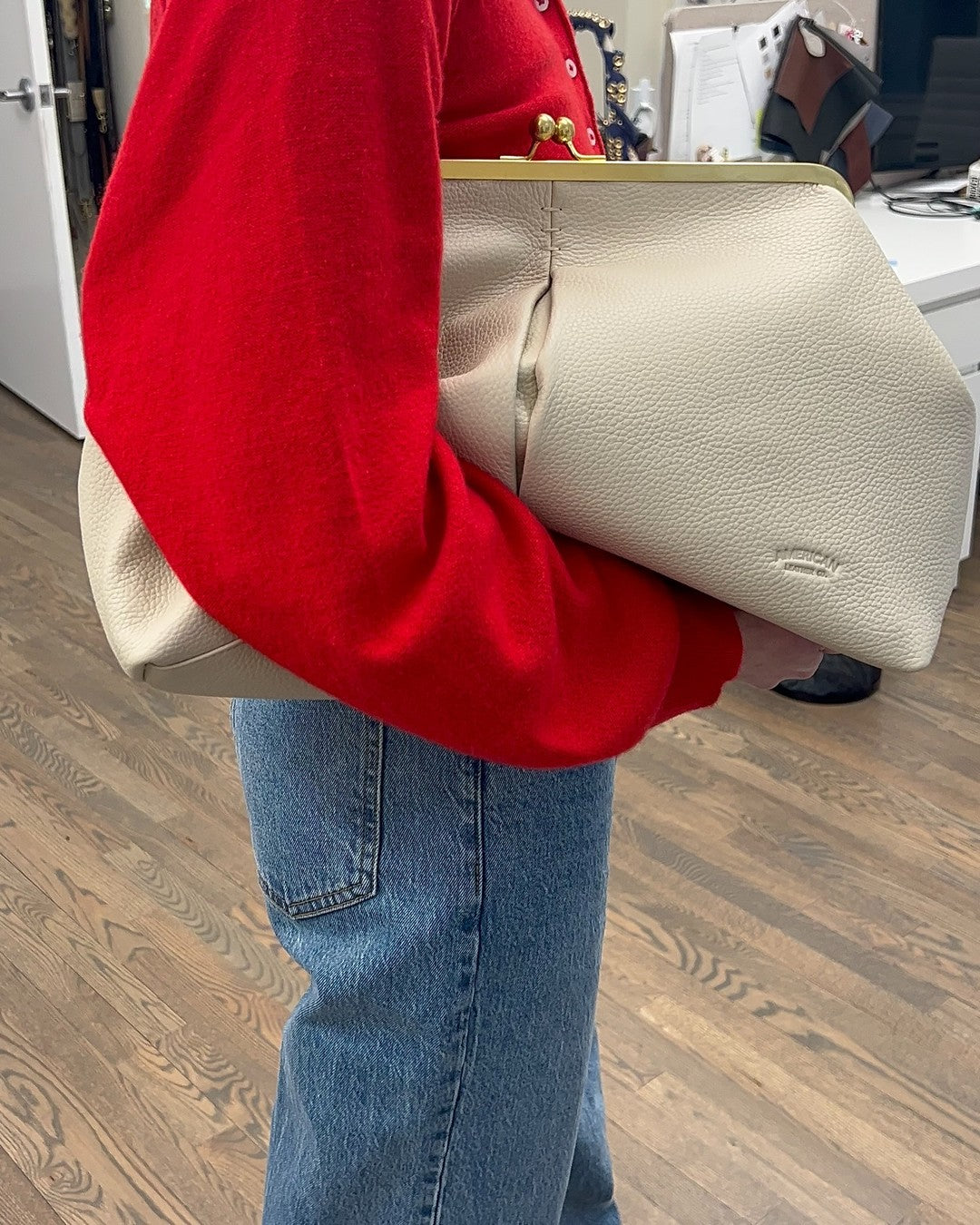 This buttery soft glovetanned leather silhouette features our iconic kisslock closure inspired by vintage coin purses, an inside zip pocket to organize essentials and a detachable leather strap for crossbody wear.