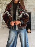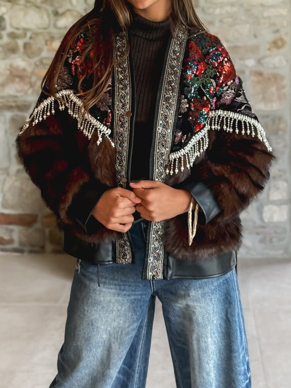 Sequined Floral Print Fur Coat