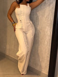Single Shoulder Strap Tether Pants Suit