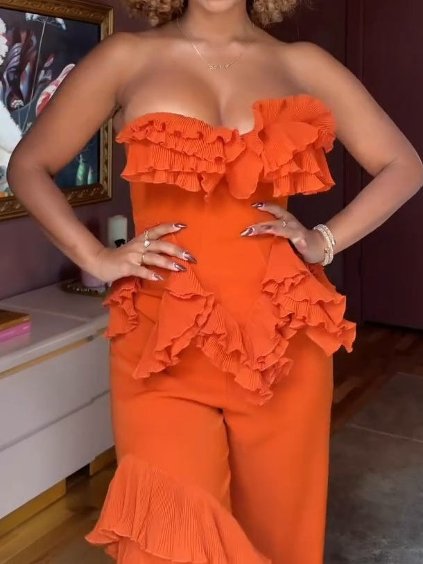 Tall Ruffle Strappy Woven Two Pieces Set